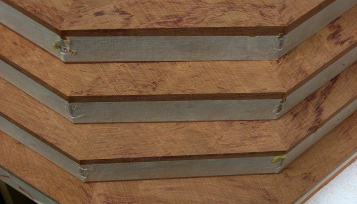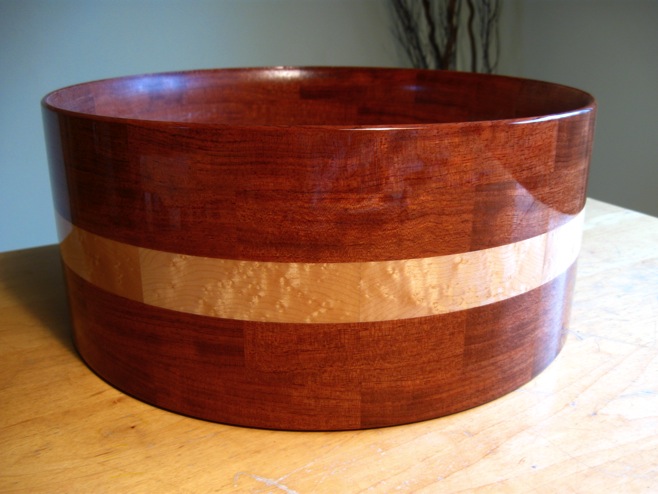 This is sweet joinery - if you look at the Bubinga shell rings above, you can (sort of) see how the individual blocks fit together really nicely and render the glueline almost invisible (on the top of each piece, not the face which has the tape on it). This is what I strive for with all of my joints, because it means that you have a secure gluebond, and that the completed shell won’t have any unsightly lines or (EGads) gaps between segments.