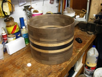 One of the 15x12 inch floor tom shells is shown in a state of undress prior to high gloss. This is a really cool size for a drum, and I think it is going to sound great.
