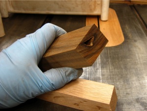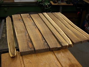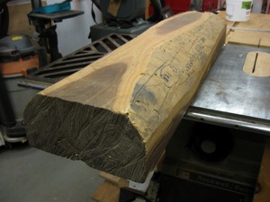 The slab which arrived weighed close to 70 pounds, and the dimensions seemed generous enough to yield a drum and hoops with plenty of stock left over. As I opened it up however, I discovered that much of the interior had been spoiled by splits, insect damage and bark inclusions. With virtually nothing usable left, I managed to salvage enough wood for a 14 by 5.5 inch, thin shell drum with matching hoops.