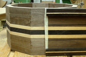 Over the course of this project, I developed a wonderful friendship with our client, and he almost knocked me over when I received an unexpected (and rather large) deposit check for a complete drumkit based on this snare drum just before Christmas. The kit order has now increased in size to nine drums including a gong tom and three floor toms. We continue to enjoy a great relationship as I provide semi-weekly status updates on the many details involved in a project of this scale.